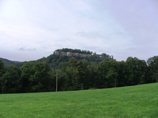 drei für 9 EUR zuerst per Bus und dann per Treckerzug zur Feste Königstein kutschierte und später auch wieder zurück. An der Festung angekommen, waren wir überrascht dort noch mal Eintritt zahlen zu müssen,