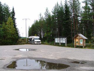 Parkplatz eines Naturlehrpfades 30 km von Turku entfernt, wo wir eine ruhige Nacht verbringen, bis auf die Tatsache, dass wir mal wieder mitten in der Nacht die Gasflasche wechseln müssen, gut das wir in Oravi noch