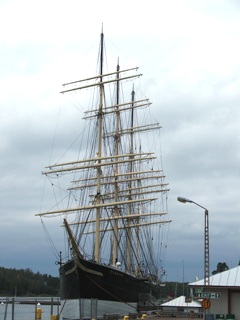 Marinemuseum. Nach einem Besuch ist uns nicht zumute, nur der Fracht-Großsegler „Suomen Joutsen“ zieht uns in seinen Bann. Kurz dahinter befindet sich eine als Museumsschiff am Hafen liegende Dreimast-Bark aus