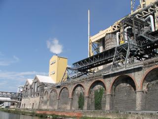 Bilder an einer Brücke in Dombasle sur Meurthe, die den Salzbergbau sowie die Peniches darstellen