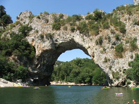 Pont d´Arc, dem monumentalen natürlichem Felsenbogen, der den Eingang zu den Gorges de l´Ardèche darstellt. 1980 wurde eine Panoramastrasse entlang des linken Flussufers ind die Felsen gebaut, die zahlreiche
