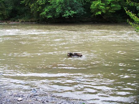 hier durfte Max nur mit Leine baden, die Strömung war ziemlich heftig