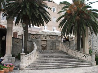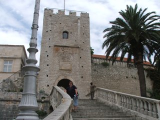 als „Einsatzboot“ für drei Reisebusse galt und das reguläre Boot eine Viertelstunde später die Leinen löste. Wir erreichten Korcula nach der kurzen Überfahrt von 15 Minuten so gegen 12.00 Uhr. Die Altstadt