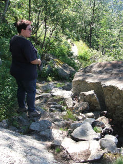 schwedischen Grenze. Hier verlässt man den Zug und begibt sich auf den Rallarvejen. Bis zur Zielstation werden hier 9 km angegeben, aber die sind wenig glaubhaft; wir hatten jedenfalls den Eindruck, es war mehr.