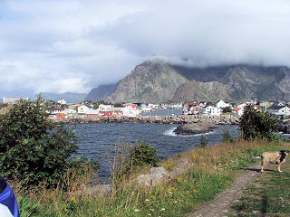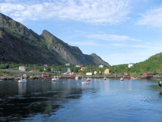abenteuerlichen Windungen entlang einer Bucht, dann geht es noch durch einen 880 m langen Tunnel und danach steht man in dem kleinen Ort Utakleiv, der auf der einen Seite vom Meer eingschlossen ist, und auf der