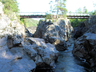 abbogen. Der Straße, die auch zum Övre Dividal Nationalpark führt, folgten wir ca. 25 km. Dort kann man neben einer gesperrten Brücke anhalten und durch die Jettegrytter klettern. Ein wenig Vorsicht ist jedoch